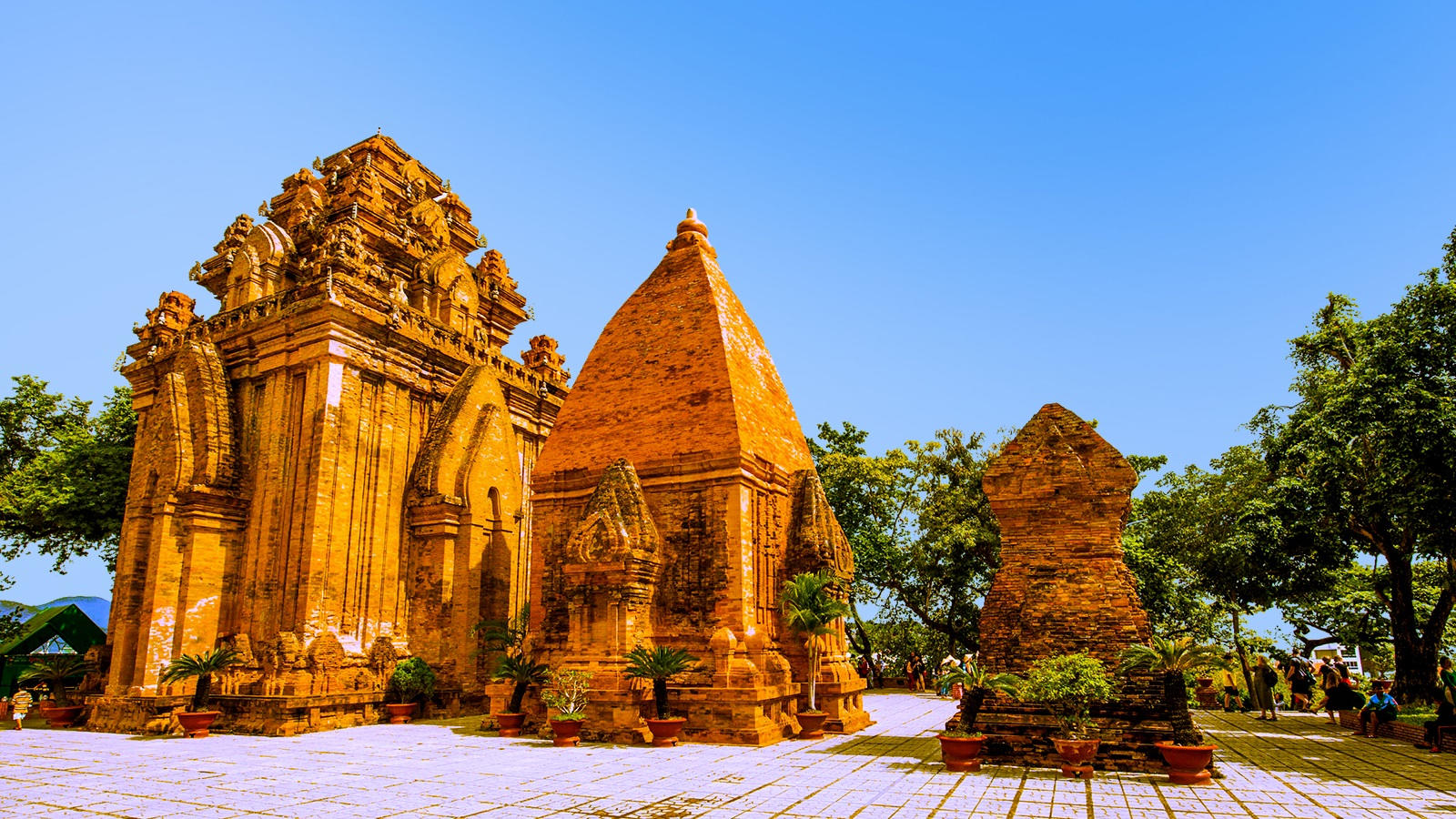 【占婆塔】(Po Nagar ChamTowers) (游觅时间 40 分钟)。当地人又称此庙为婆那加,也译作天依女神庙。这里有几栋魏峨的宝塔,其中最大的主塔内供奉占婆女神,她是古时候统治芽庄的占婆王国之母,保护着靠海吃海的渔民,相当于中国渔民心目中的妈祖。