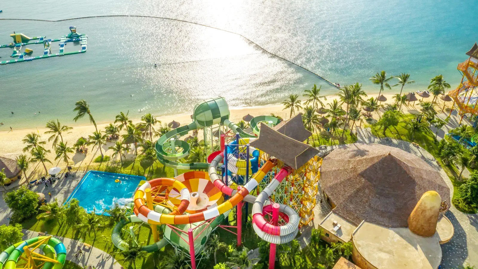 【蚕岛】从空中俯瞰像条绿色的蚕静卧在海面,是芽庄诸多列岛中最具代表性的岛屿之一,岛上郁郁葱葱,空气清新,随处都透露着一股原始美,各类水上娱乐设施齐全:游泳池,露天吧台,特色餐厅等等。