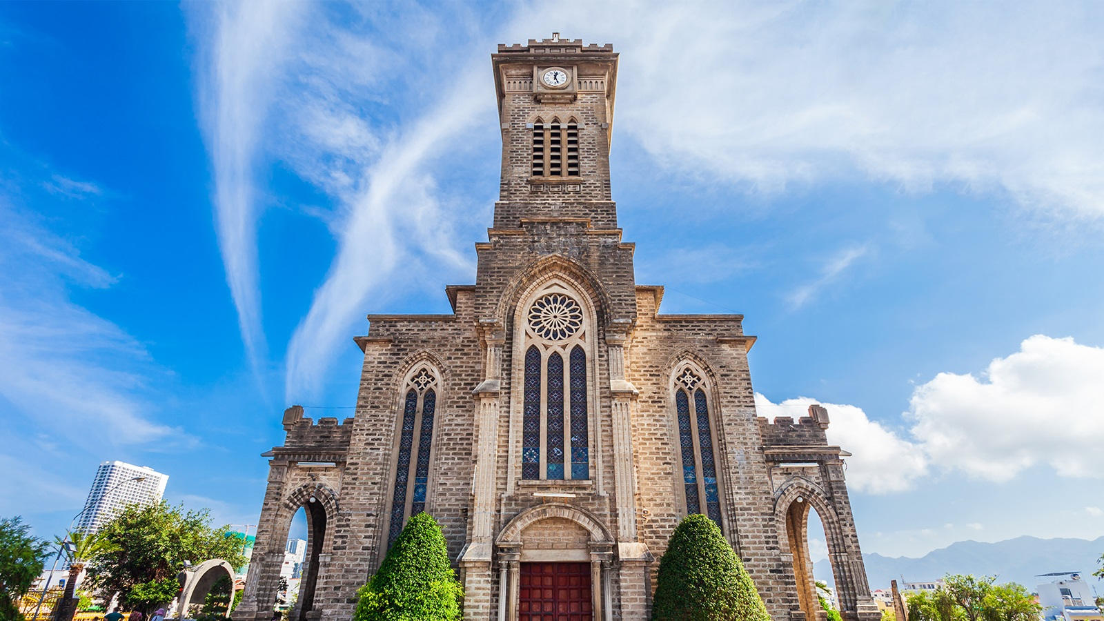 参观【芽庄教堂】(外观约 30 分钟)是一座哥特式教堂,建于 1928~1933年,很有法国味,教堂有钟塔和美如锦花、绘满《圣经》故事的天窗玻璃,石头建造的内部墙壁给人清凉之意。教堂外是繁杂吵嚷的街头,教堂内则静谧平和,俨然另一个世界。注:芽庄教堂---因教堂斋戒,接待人数有限;能否正常参观,以当天实际情况为准;敬请谅解!