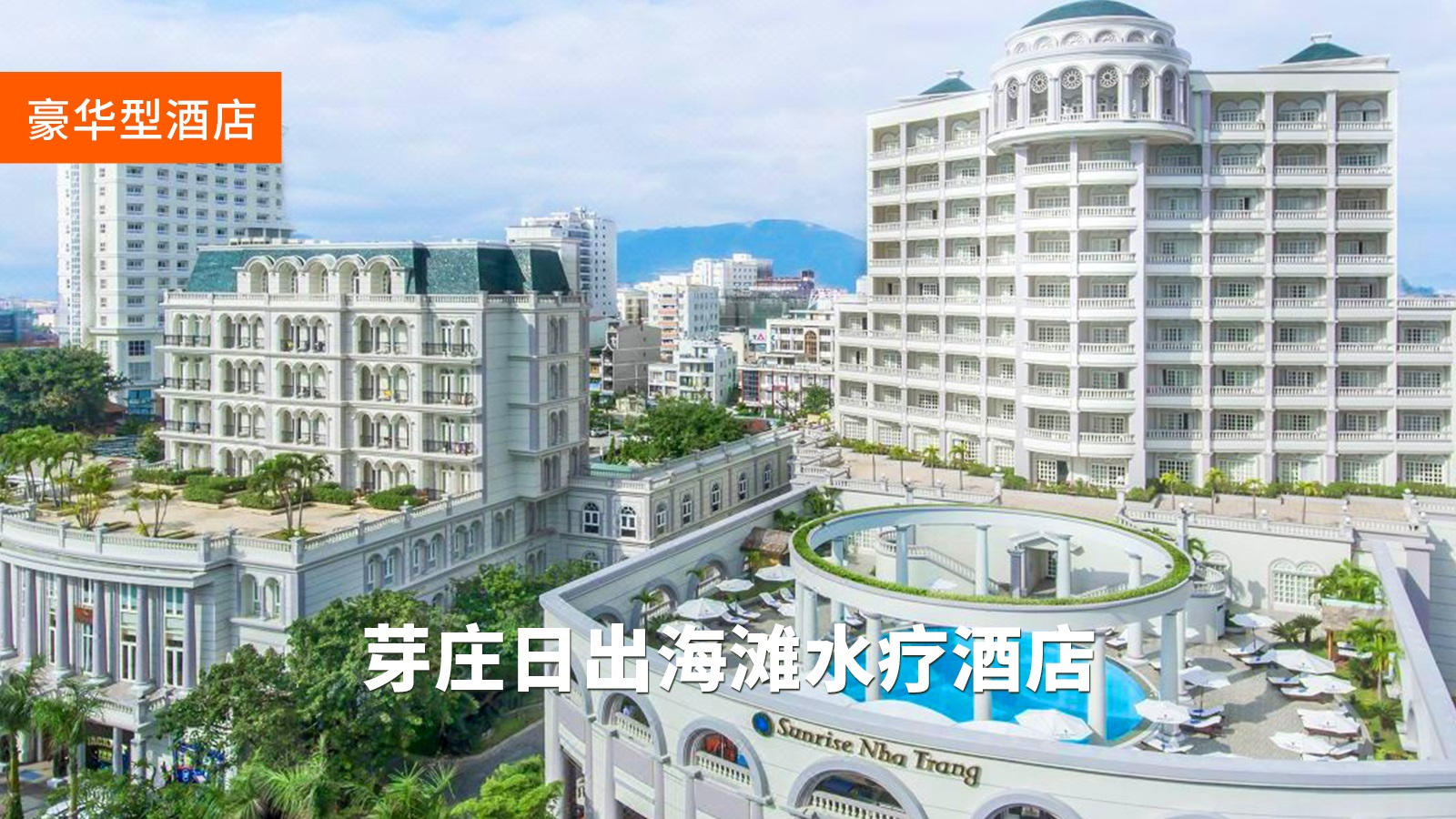 芽庄日出海滩水疗酒店:酒店拥有百余间面海阳台房,尽享芽庄海滩的高雅气质。浪漫欧式泳池,私人海滩是阳光爱好者的天堂。在天台或者大厅,都可以尽情的享受海水拍打岸边,尽享浮光掠影。